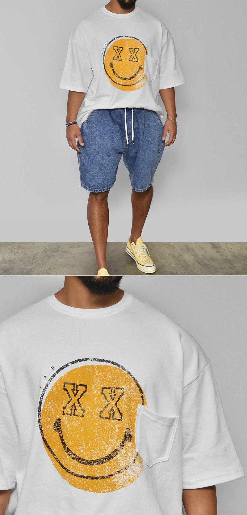 Tee711_2 פורסם 25 במרץ 2026 ב800 × 1664 בטישרט בגזרת אוברסייז סמיילי בשילוב כיס חזה 711 ← הקודם הבא →